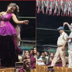 मुरैना। मध्य प्रदेश के मुरैना में कंस वध पर आयोजित मेले में अश्लील डांस हुए। वीडियो 31 मार्च को रामपुर में हुए आयोजन के दौरान का है जिसमें कुछ पुलिसकर्मी भी दर्शक बनकर नाच गाने का लुत्फ़ उठाते रहे और ड्यूटी करते नजर आए।