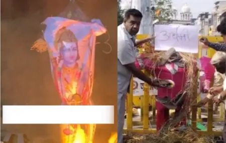 दरअसल, तमिलनाडु के त्रिची में 30 सितंबर एंथम तमिलर संगम नामक संगठन ने अयानपुथुर गांव में भगवान राम का पुतला जलाया। इस प्रदर्शन को रावण लीला का नाम दिया गया था। न्यूज एजेंसी के मुताबिक, संगठन के लगभग 5 से 6 सदस्यों ने भगवान राम की एक फ्लेक्स बैनर को चप्पलों से पीटा, उसे आग के हवाले कर दिया और फिर इस वीडियो को सोशल मीडिया प्लेटफार्मों पर अपलोड कर दिया। जिसमें फेसबुक पेज Aindham Tamilar Sangam की आईडी से इसे साझा किया गया था।