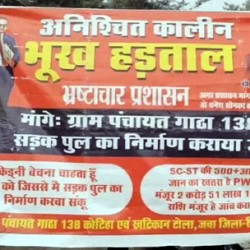 रीवा। जिले के ग्राम पंचायत गढ़ा 138 में सड़क और पुल निर्माण को लेकर लापरवाही अब बड़े विरोध का रूप ले चुकी है। गांव निवासी धनेश सोनकर कलेक्टरेट गेट के सामने भूख हड़ताल पर बैठ गए, जिससे प्रशासन की कार्यप्रणाली पर सवाल खड़े हो गए हैं। धनेश एक बैनर के माध्यम से वर्षों से अधूरी पड़ी सड़क-पुल परियोजना की ओर ध्यान आकर्षित कर रहे हैं। जिस पर लिखा है, 'किडनी बेचना है, ताकि सड़क-पुल बनवा सकूं।'वर्ष 2022 में ग्राम पंचायत गढ़ा 138 में सड़क-पुल निर्माण के लिए 2 करोड़... अपराध
